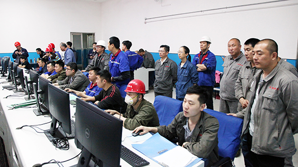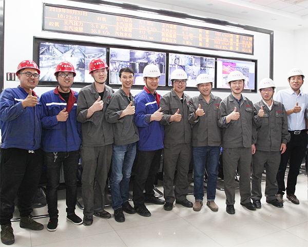 4萬機組一次并網成功后,集團總工程師李成玉(右三)、項目建設部長胡林桂(右一)中鑫熱電總經理韋毅民(右二)和副總經理李樹彬(右四)同部分生產、技術管理骨干在中控室露出歡快的笑容!