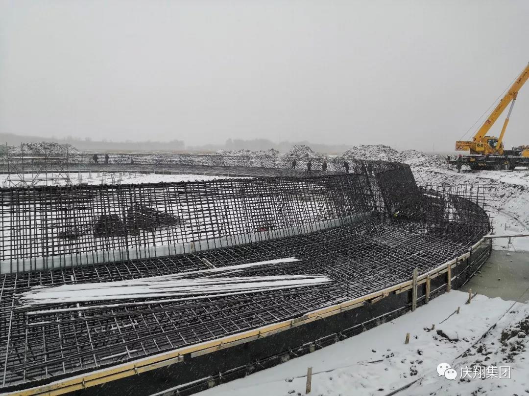 (肇源項(xiàng)目部雪中綁扎鋼筋)
