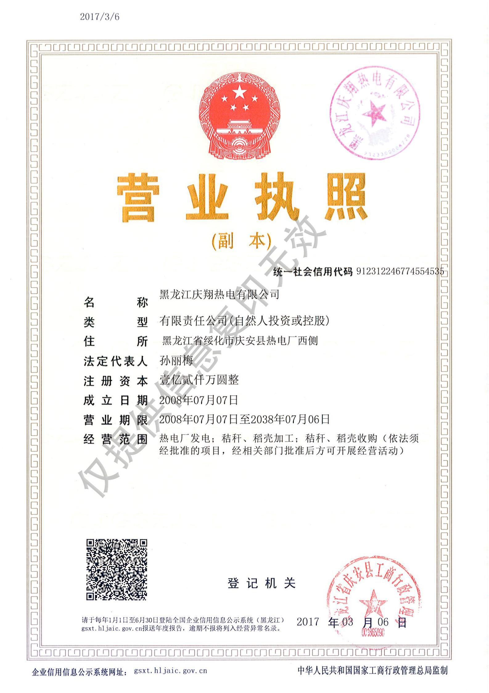 慶翔熱電營(yíng)業(yè)執(zhí)照